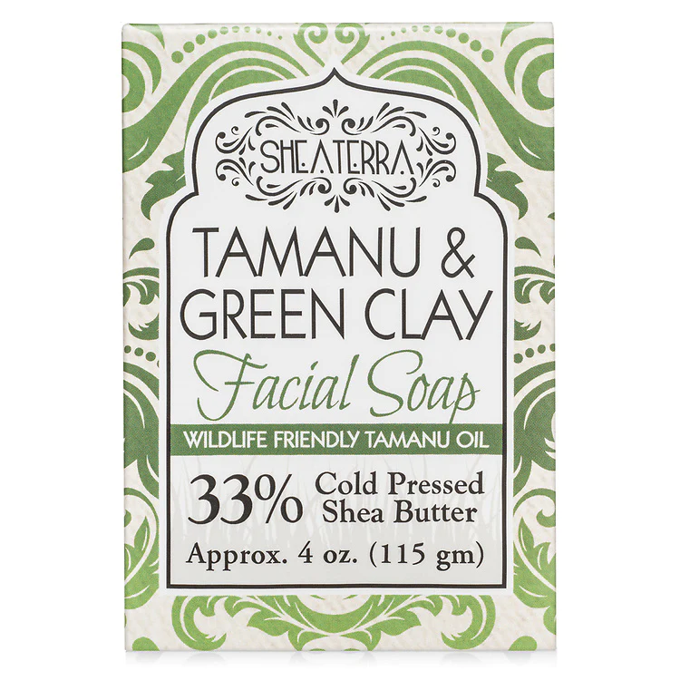 يحتوي زيت تامانو المحصود البري على عدد كبير من خصائص البشرة المفيدة. من مكوناته المضادة للبكتيريا والفطريات إلى قدرته على إصلاح البشرة، يتم تقييم زيت تامانو من قبل أولئك الذين يبحثون عن بشرة واضحة وصحية. يسحب الطين الأخضر الشوائب من الجلد مما يؤدي إلى بشرة أكثر وضوحا. يحتوي هذا الصابون غير المعطر أيضا على 33٪ من زبدة الشيا العضوية (بعد تبخر الماء) للمساعدة في تهدئة البشرة وتنعيمها.