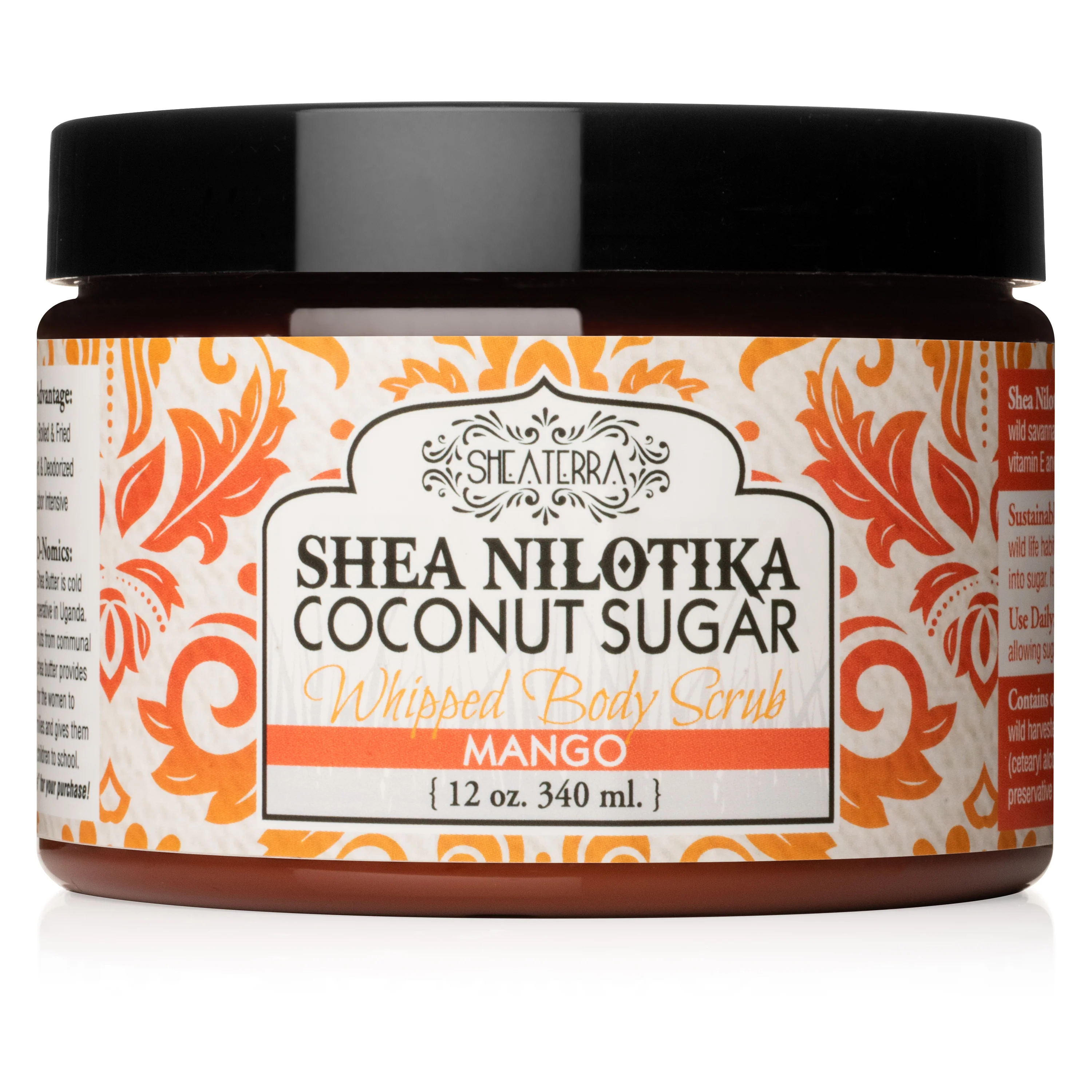 على عكس المقشرات التي تغسل في المجاري وتخلف وراءها فوضى دهنية، يلتصق مقشر جوز الهند والسكر المخفوق من Shea Nilotik بالجلد طوال عملية التقشير. تستخدم Shea Terra بلورات من رحيق أزهار جوز الهند لتزويد البشرة بمصدر غني بحمض الجليكوليك والتقشير. زبدة الشيا النادرة من Shea Nilotik' المعصورة على البارد من أوغندا غنية بفيتامين E والستيرولات النباتية.