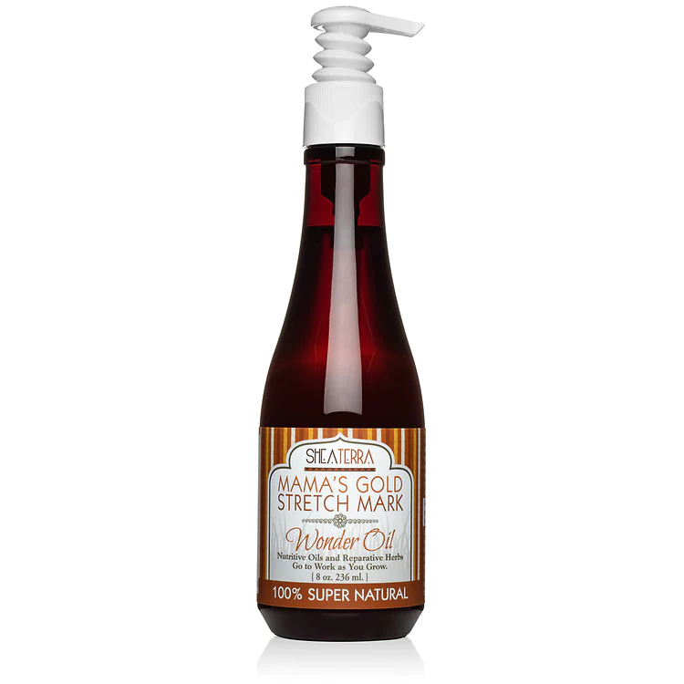 زيت ماما الذهبي للوقاية من علامات التمدد والعلاج ليس زيت علامات التمدد النموذجي المصنوع من زيوت رخيصة ورديئة لا تفعل الكثير لتحسين حالة البشرة. لا، زيت العلاج الشهير من Shea Terra Organics، الذي يظهر في مجلات مثل Fit Pregnancy، مصنوع من أفضل الزيوت الغذائية المصممة للاختراق تحت سطح الجلد عند الحاجة. صاغت مؤسس Shea Terra Organics، وهي أم ل 14 طفلا، هذا المزيج الغريب مع أكثر من عقد من الخبرة في الأعشاب والزيوت الأفريقية.