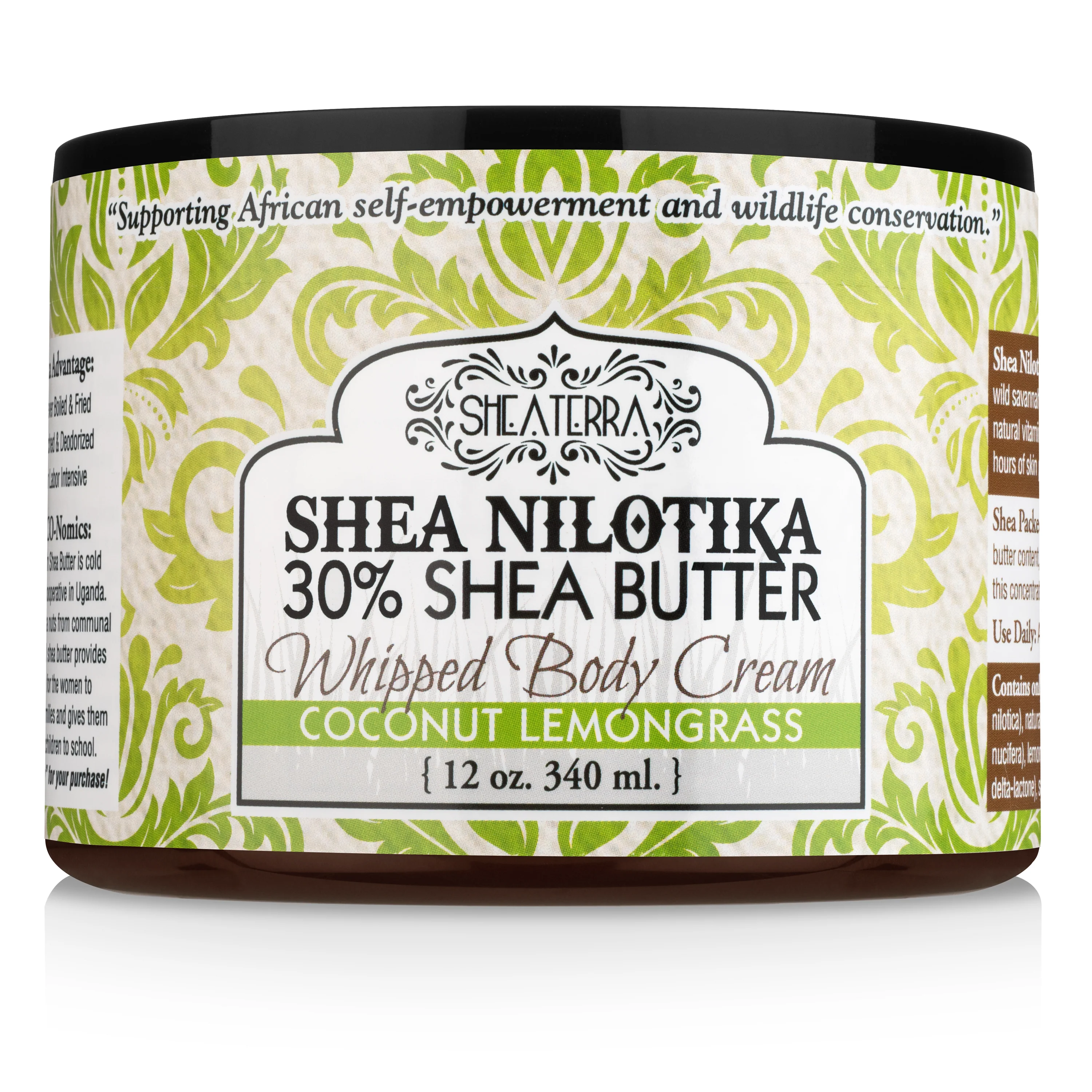 زبدة الشيا 30% المعتمدة من وزارة الزراعة الأمريكية والمخفوقة بمياه الينابيع الجبلية النقية تنتج كريمًا غنيًا ورائعًا يحافظ على ترطيب البشرة ونعومتها طوال اليوم. لا يعمل هذا الكريم الغني بزبدة الشيا على تنعيم الساقين وتقليص علامات التمدد وتنعيم البشرة الجافة فحسب، بل إنه يعمل أيضًا على ترطيب القدمين واليدين. دلكي كريم الجسم المخفوق 30% من Shea Nilotik على بشرتك يوميًا واستعدي للدهشة من التحسينات المذهلة.