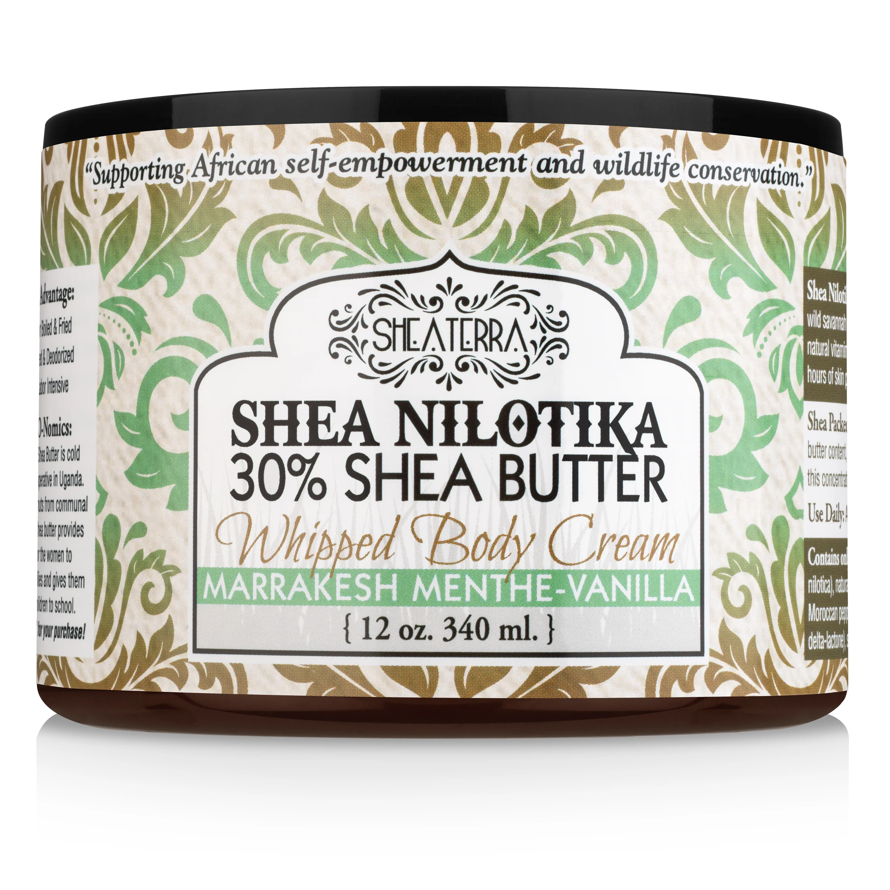 زبدة الشيا 30% المعتمدة من وزارة الزراعة الأمريكية والمخفوقة بمياه الينابيع الجبلية النقية تنتج كريمًا غنيًا ورائعًا يحافظ على ترطيب البشرة ونعومتها طوال اليوم. لا يعمل هذا الكريم الغني بزبدة الشيا على تنعيم الساقين وتقليص علامات التمدد وتنعيم البشرة الجافة فحسب، بل إنه يعمل أيضًا على ترطيب القدمين واليدين. دلكي كريم الجسم المخفوق 30% من Shea Nilotik على بشرتك يوميًا واستعدي للدهشة من التحسينات المذهلة.