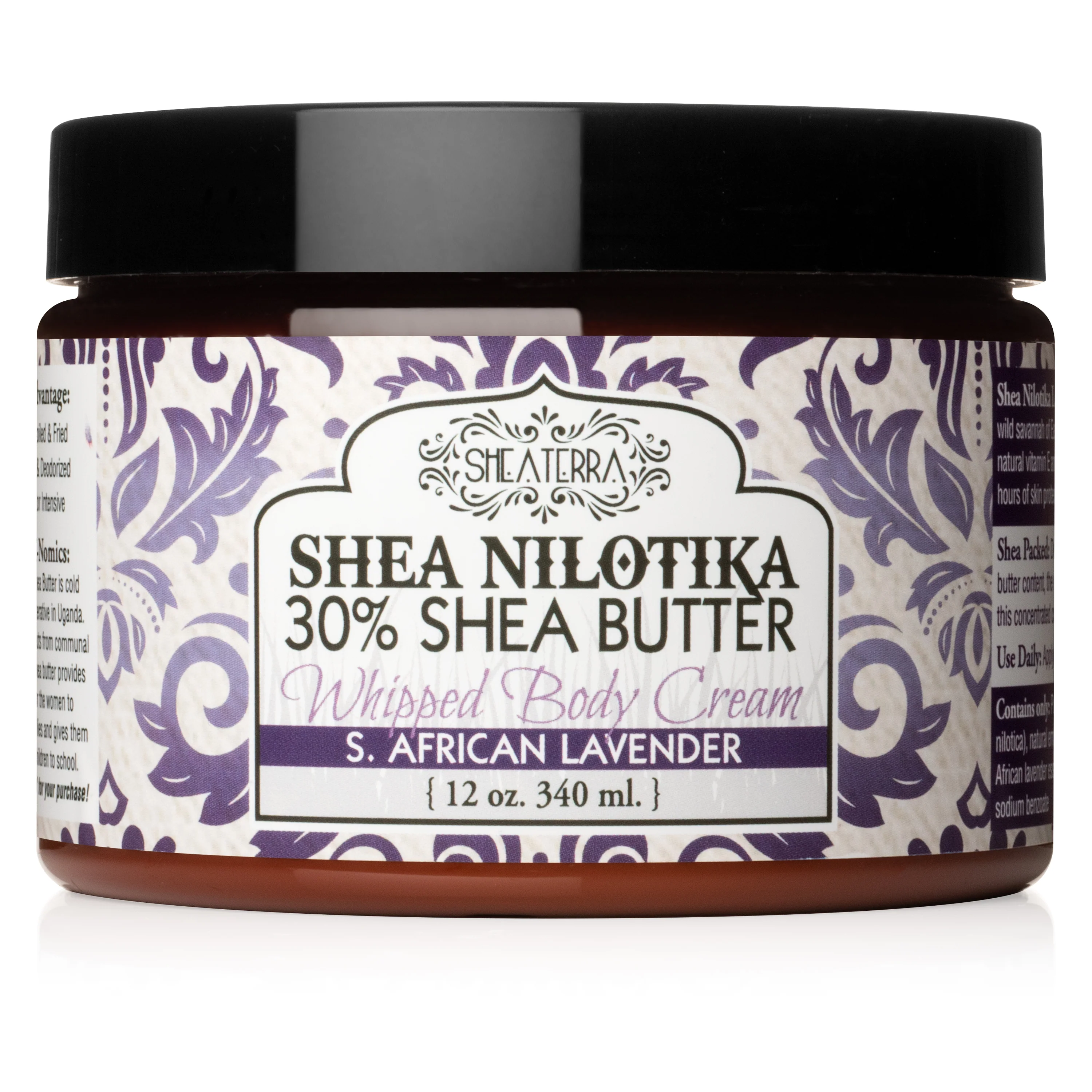 زبدة الشيا 30% المعتمدة من وزارة الزراعة الأمريكية والمخفوقة بمياه الينابيع الجبلية النقية تنتج كريمًا غنيًا ورائعًا يحافظ على ترطيب البشرة ونعومتها طوال اليوم. لا يعمل هذا الكريم الغني بزبدة الشيا على تنعيم الساقين وتقليص علامات التمدد وتنعيم البشرة الجافة فحسب، بل إنه يعمل أيضًا على ترطيب القدمين واليدين. دلكي كريم الجسم المخفوق 30% من Shea Nilotik على بشرتك يوميًا واستعدي للدهشة من التحسينات المذهلة.