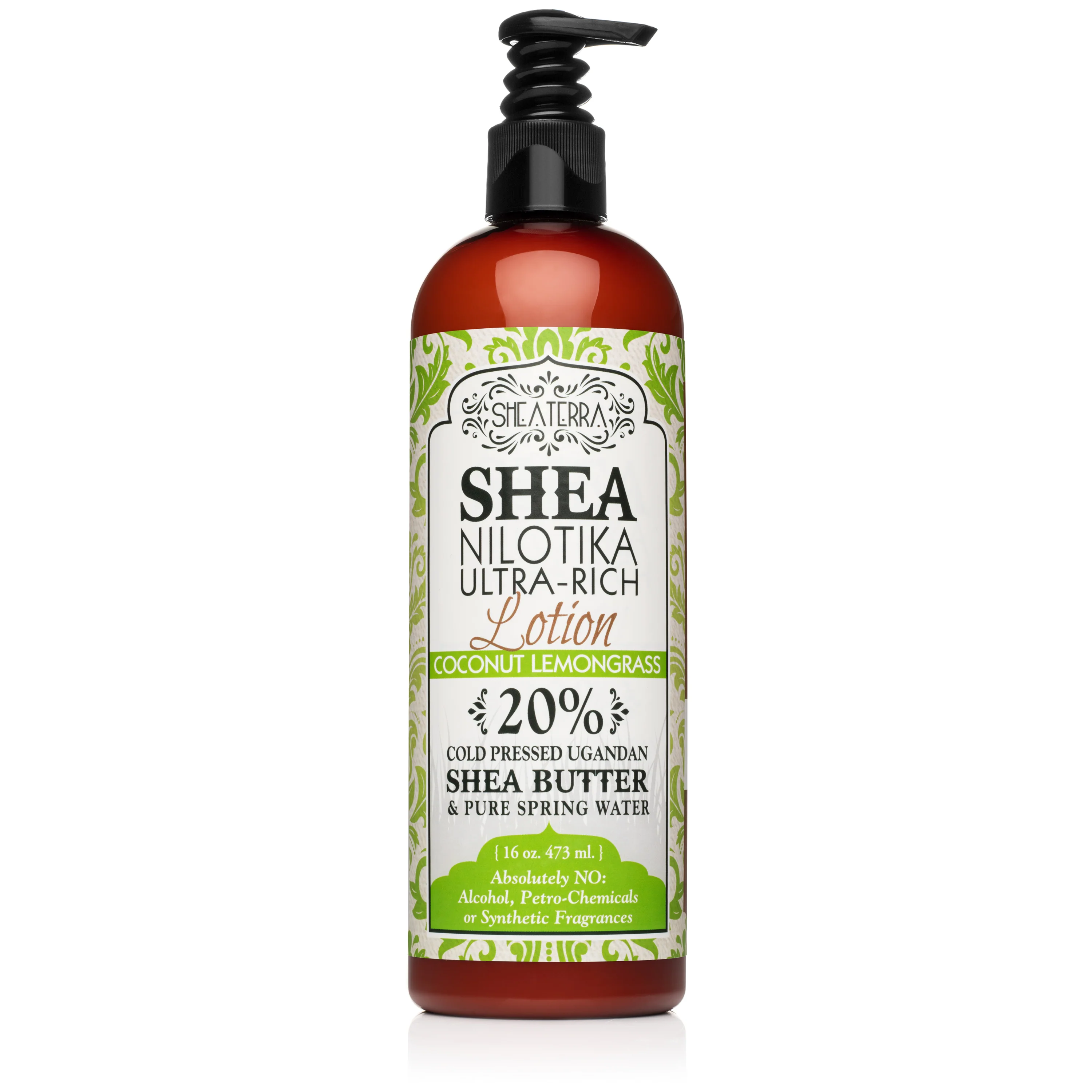 طبيعي للغاية. يتم تشغيل لوشن الجسم Shea Nilotik' Butter Ultra Rich بواسطة زبدة الشيا الشيا Nilotik العضوية المعتمدة بنسبة 20٪ جنبا إلى جنب مع مياه الينابيع الجبلية النقية المرطبة. زبدة الشيا الشيا نيلوتيك تزيل قشرة البشرة وجفافها طوال اليوم. لوشن الجسم Shea Nilotik' Shea Butter Ultra Rich يدلل البشرة مما يخلق لمسة نهائية ناعمة حريرية. يتم تقليل الخشونة والتهيج. معطر بمستخلص وزيت جوز الهند وزيت عشبة الليمون الاساسي.